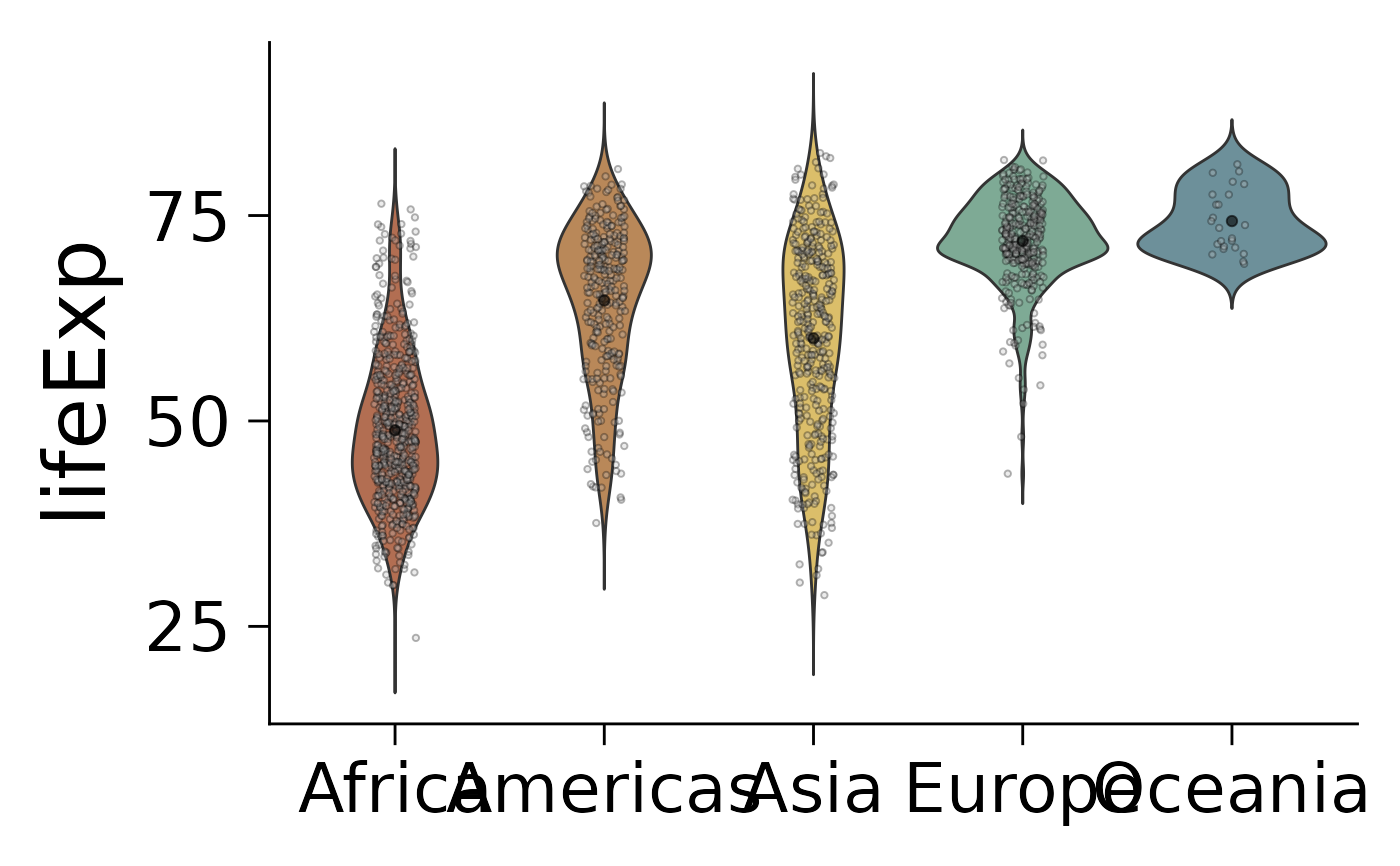 ggplot(gapminder, aes(x = continent, y = lifeExp, fill = continent)) +